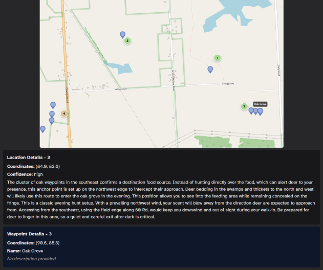 GameSearch-AI is now accepting waypoints from your favorite mapping applications to improve the app's ability to analyze land! Currently (as of 10/23) we are only accepting .gpx files. In the next few days I'll add support for .kml files. This whole system is completely brand new, so there are tons of improvements I want to make as well. There might even be bugs, so please report any issues you encounter.